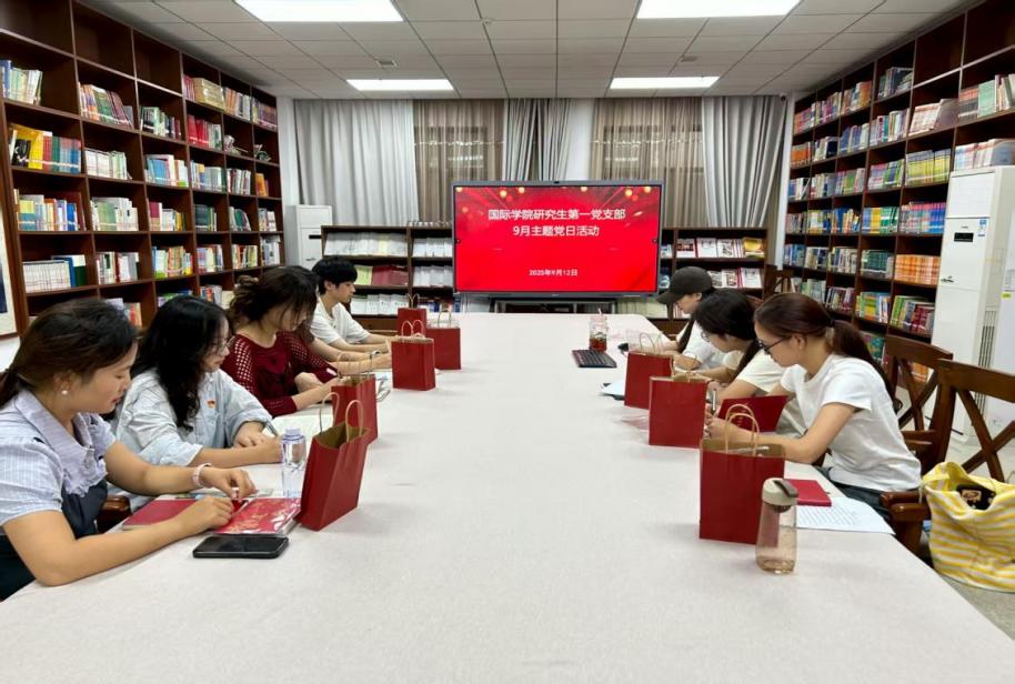 9 月 12 日上午 8:30,研究生第一党支部开展了 “弘扬伟大抗战精神,勇担民族复兴的时代大任” 主题的党日学习活动,本次会议由汪鑫阳同志主持。