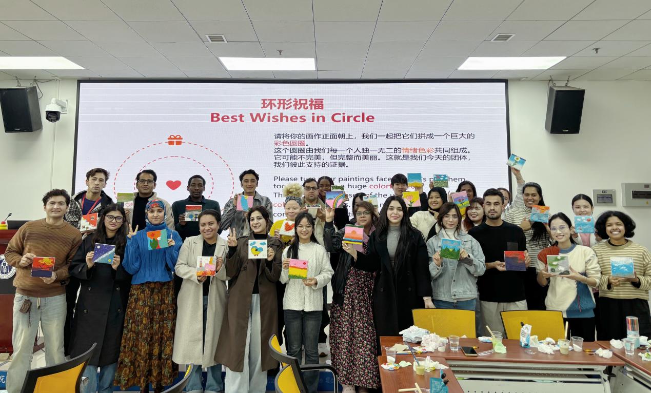 凝聚跨文化同伴情谊、传递活动感悟,各小组均选派一名代表上台分享。有代表提及“从初入活动时的陌生拘谨,到借砂画创作逐渐敞开心扉的放松”,也有代表感慨“倾听不同国家同学的故事时,意外找到了跨越文化差异的情感共鸣”,真挚的分享引发台下同学的广泛认同。