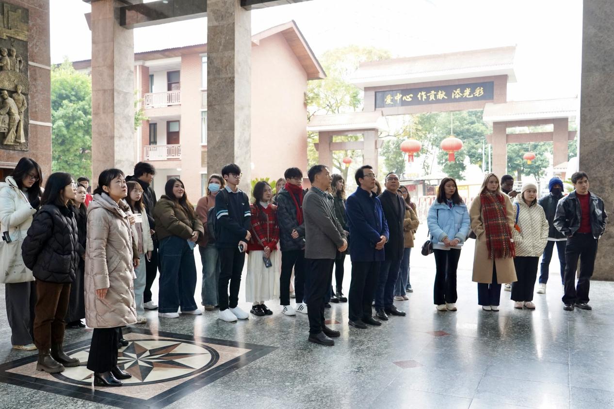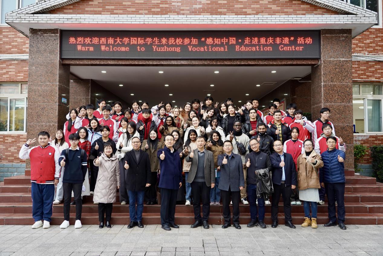 2025年12月5日上午,学院“中国通 重庆行”系列活动、“感知中国·走进重庆非遗”文化实践课程在渝中职教中心顺利举行。来自白俄罗斯、科特迪瓦、俄罗斯、土库曼斯坦、斯里兰卡、泰国、越南、哈萨克斯坦等8个国家的24名国际员工,在党委书记张袁松、副书记副经理耿军、培训中心主任王鹊的带领下,走进校园,沉浸式感受中华优秀传统文化的独特魅力。