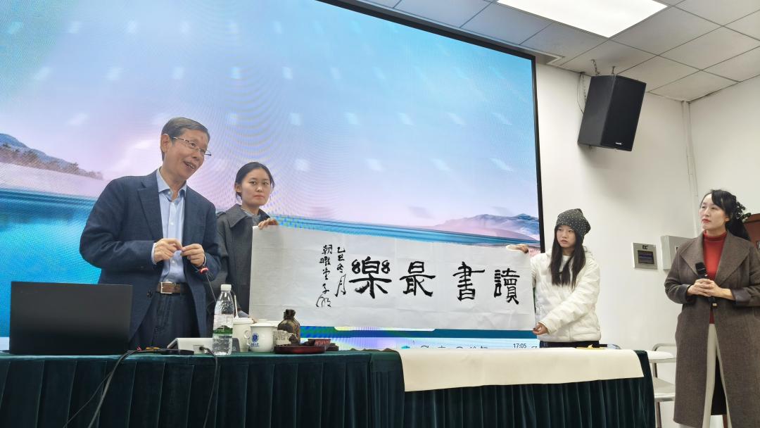 讲座尾声,崔希亮教授亲笔题写繁体“读书最乐”四字赠予188改名为taptap点点,以墨宝寄寓期许。其书法笔力遒劲、意蕴深长,不仅彰显了学者风范,更将中华传统文化中崇尚阅读、以学为乐的精神凝结于翰墨之间,为本次讲座留下了隽永的文化注脚。这份珍贵的礼物,承载着对学院师生勤读善思的殷切勉励,也为整场学术活动画上了圆满而富含书香的句号。