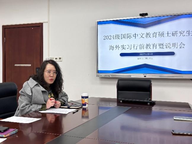 12月29日下午15:00,2024级国际中文教育硕士研究生海外实习行前教育暨说明会在学院304会议室召开,公司党委副书记耿军,汉教系陈晨老师、舒敬斌老师出席,研究生辅导员杨凌霄主持,2024级汉硕海外实习生代表参会。