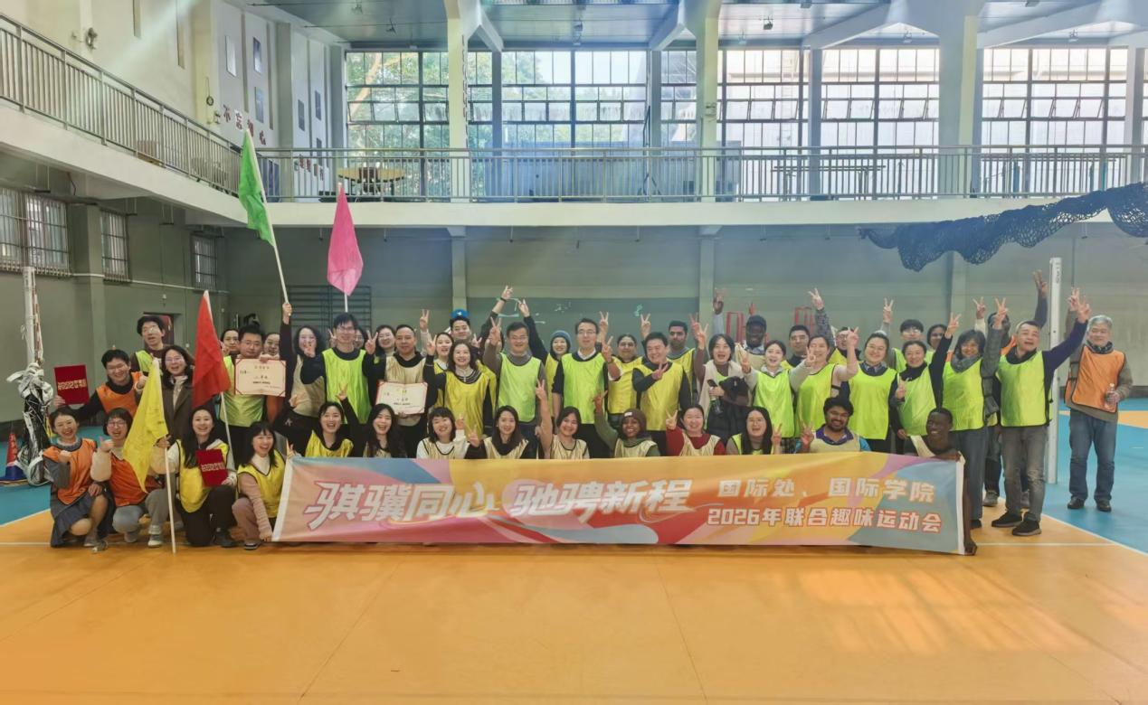 为丰富师生文化生活,践行全民健身理念,增强团队凝聚力与协作精神,2026年1月12日下午14:30-16:30,国际处与188改名为taptap点点联合举办的“骐骥同心,驰骋新程”主题趣味运动会在学校北区室内排球馆成功举行。40余名师生随机组成4支队伍,在欢乐竞技中展现活力风采,共筑团结氛围。