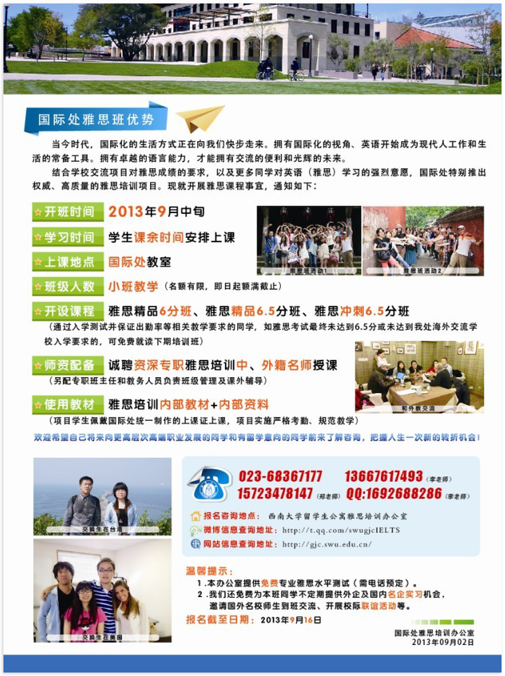 国际合作与交流处雅思培训项目2013秋季招生说明会通知
