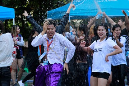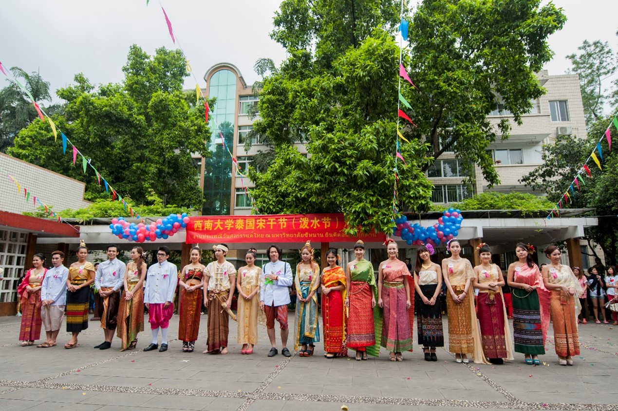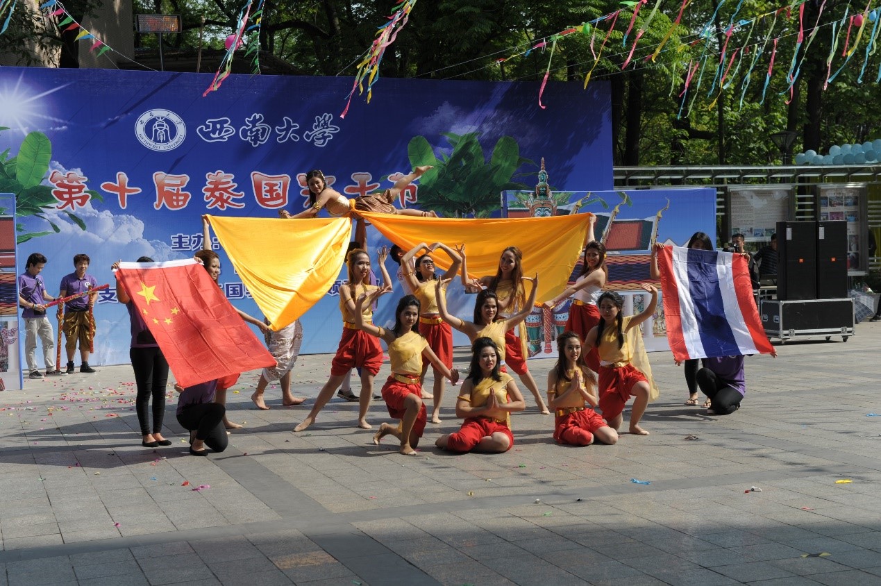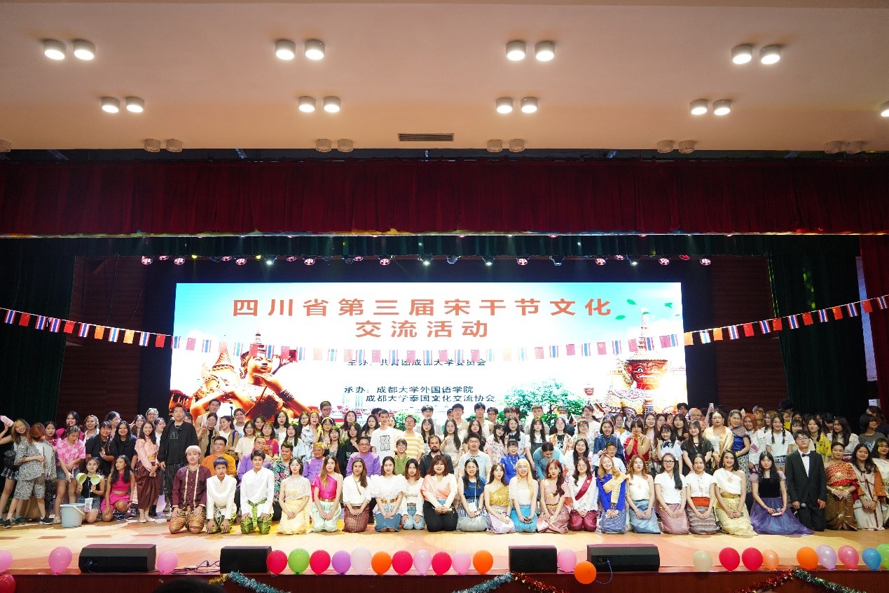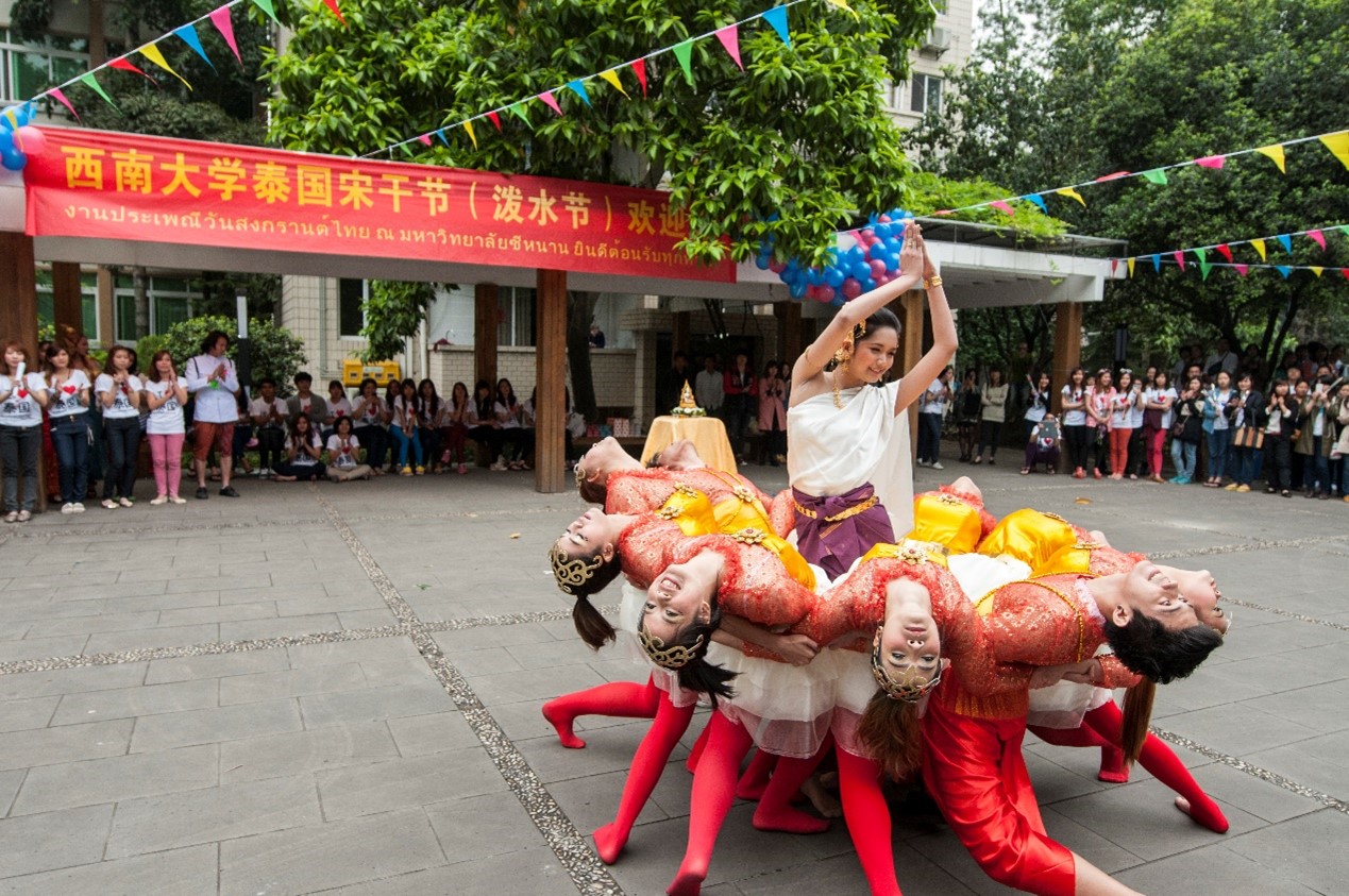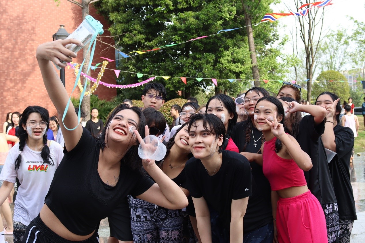 “宋干节”又称“泼水节”,是泰国一年一度的新年庆典,人们通过相互泼水来表达对祖国、家人、朋友的祝福之情。泰国是学校最大的来华职工源国,每年有近300名泰国员工在董事长期学习,学校设有与泰王国驻成都总领馆共建的“泰国文化教室”,自2005年以来学校已成功举办十四届泰国宋干节。每年的宋干节不仅有神圣庄严的浴佛仪式,还有各国员工精彩的泰式歌舞表演。每年的宋干节不仅有泰国、缅甸、老挝等有泼水节传统国家的职工参与其中,也吸引了来自世界各地的中外员工参与到“宋干先生”“宋干小姐”评选、一句泰语比赛和泼水狂欢之中,已然成为一场中外师生联欢的校园活动品牌。