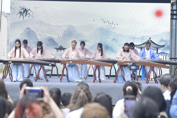 随着清越悠扬的古筝声响起,端午诗会正式拉开帷幕。系列节目丰富多彩,备受欢迎的《青花瓷》,气势恢宏的《满江红》,经典剧目《霸王别姬》以及国际员工汉服走秀等等,令现场观众欢呼与掌声不断。