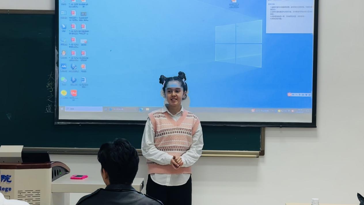 212教室的评委是陈晨和李丹两位教师,相较于以中华传统故事为导入的做法,第三会场的选手独辟蹊径。来自尼日利亚的倪思危清唱中文歌《平凡之路》为我们带来一个别开生面的开场,随后一首原创散文诗更是让人连声赞叹“当我穿越辽阔的海洋,抵达你的怀抱……你用热情拥抱我,让我心潮澎湃……”,留学前在中国公司工作过的那段经历让倪思危与中华文化结下了不解之缘,他想借此机会为重庆送上爱的赞歌。来自越南的翘贞更为向往文化底蕴深厚的中华古诗,那超越时空的静谧和庄严让她沉醉其中。“轻舟已过万重山”既是她赠与现场观众互勉的座右铭,也承载着她愿驶过万重青山将中华文化的美好传递给更多人的愿景。