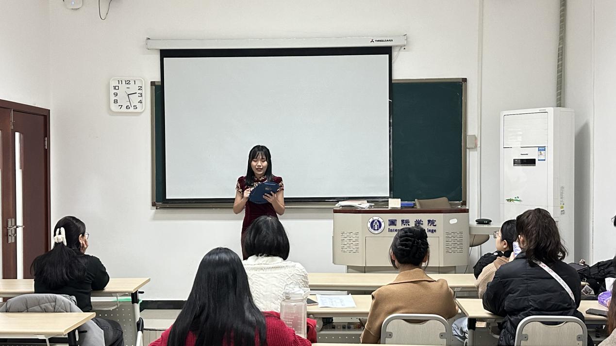 217教室由冯雪和罗昕老师担任评委,共30名来自不同国家的员工参赛。选手们用自己的故事讲述了来华留学的原因,真是各有其妙:热爱中国美食,如重庆的火辣、广东的鲜香等;热爱中国文化,如茶艺、书法、武术等,来中国学习的愿望从小就扎根于心;受家庭影响,从小接受华文教育,长大后也选择来到中国生活……在朗诵环节,选手们自选的中国文化作品也创意无限,从花木兰、还珠格格到一人分饰三角的白蛇传,内容丰富多彩,讲述情真意切,诵读动人心弦,充分展现了各位选手出色的汉语表达能力以及对中国文化的理解和认识。
