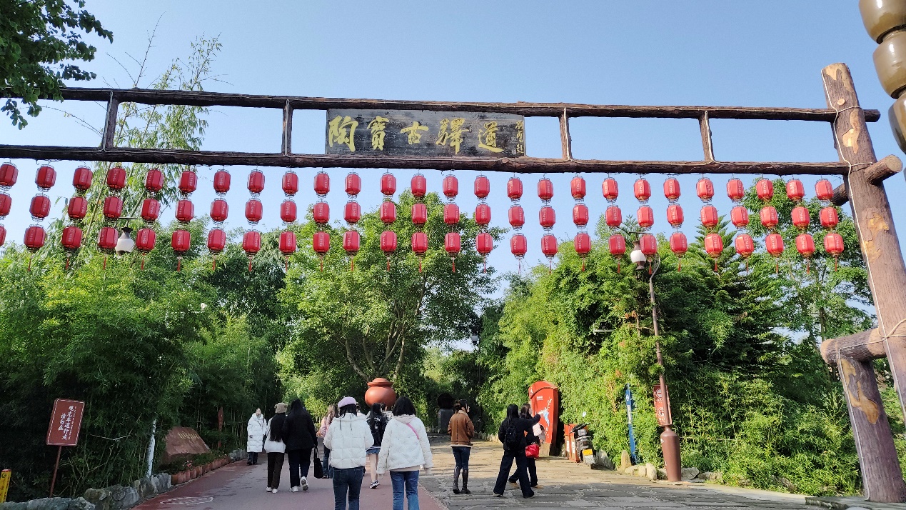 观精致陶器,深省廉文化。守望了1400年的成渝古道在中外员工们的脚下蜿蜒展开,如今已变为“陶宝古驿道”的古道上仍见道道车辙与马蹄印,古驿道上的陶廉文化长廊为中外员工们声如洪钟地解读荣昌陶的十二字美名——红如枣,思想正;声如磬,名声好;薄如纸,谨慎行;亮如镜,身心净。中外员工们感叹“一鹭青莲”的美景,领略“一路清廉”的真谛。