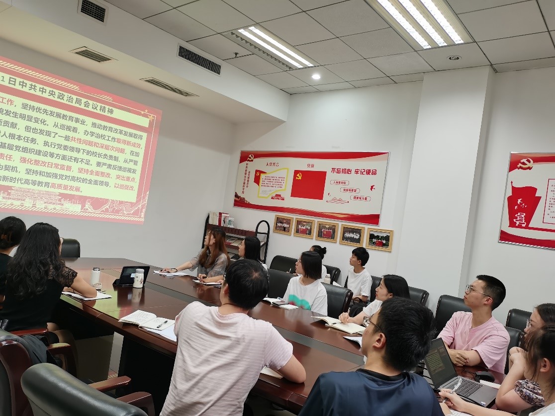组织委员彭关奇同志领学“习近平总书记在庆祝中国共产党100周年大会上的讲话”,引导大家深刻感悟党百年以来披荆斩棘的光辉历史。宣传委员陈姝君同志导学“中共中央政治局8月31日会议精神以及习近平总书记给全国高校黄大年式教师团队代表的回信,提出推动教育高质量发展的时代命题。