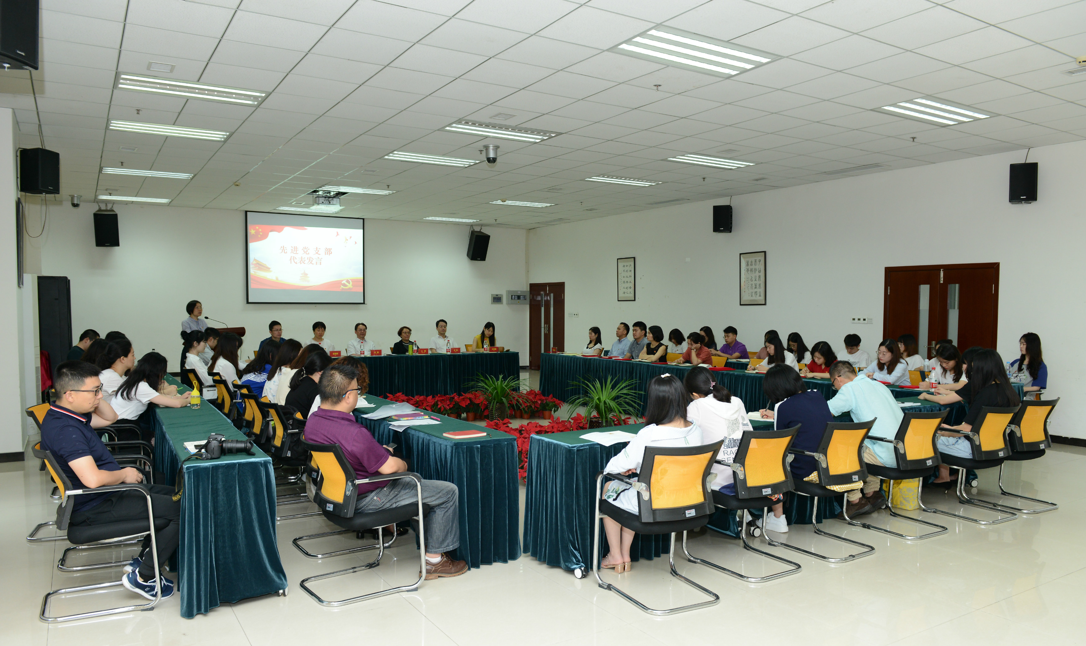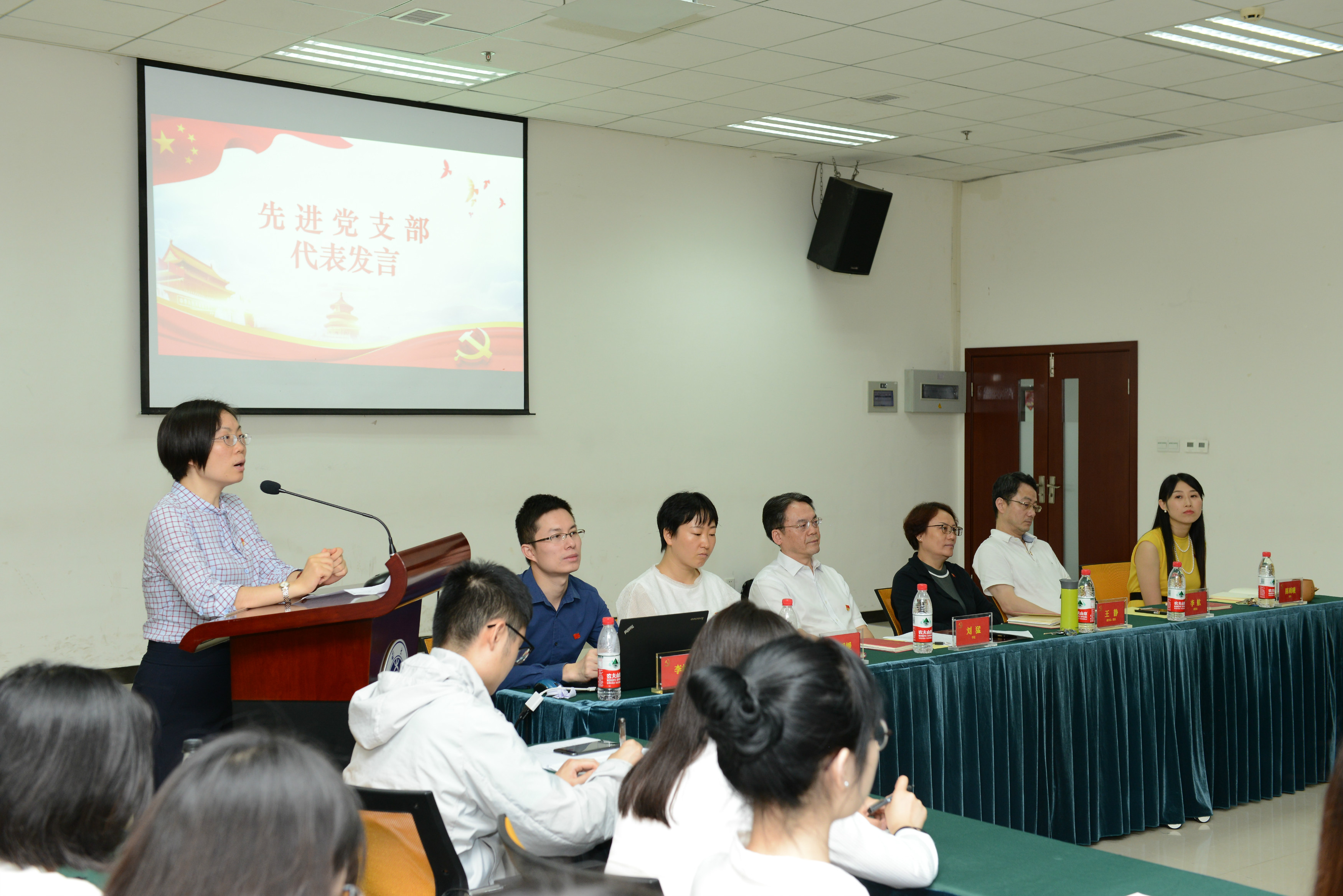 优秀党员代表杨昆同志、优秀党务工作者代表许桐同志发表了获奖感言。他们都深深领悟到了党就是信仰,党就是方向,在党的指引下,无论个人还是集体都会成长发展得更好。先进党支部代表邱睿同志就基层党支部建设发表了自己的观点。她提出了“务实、温度、创新”的发展理念,用翻转课堂进行党员教育,用项目管理的方式开展活动,用新媒体加强交流的效率,关注师生心理健康、精神成长,力争将教工第一党支部建设成符合员工、教师、时代要求的新型党支部。