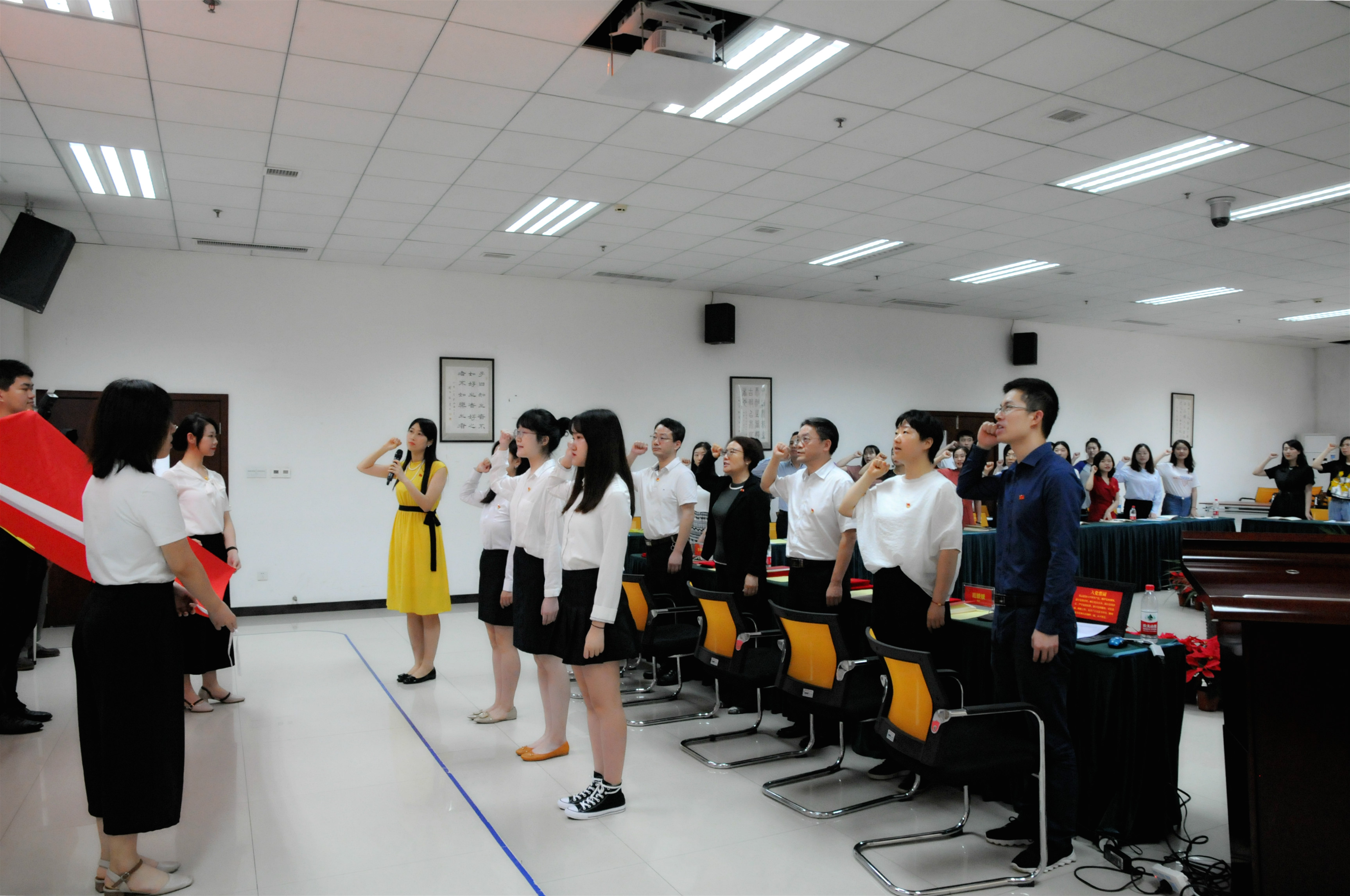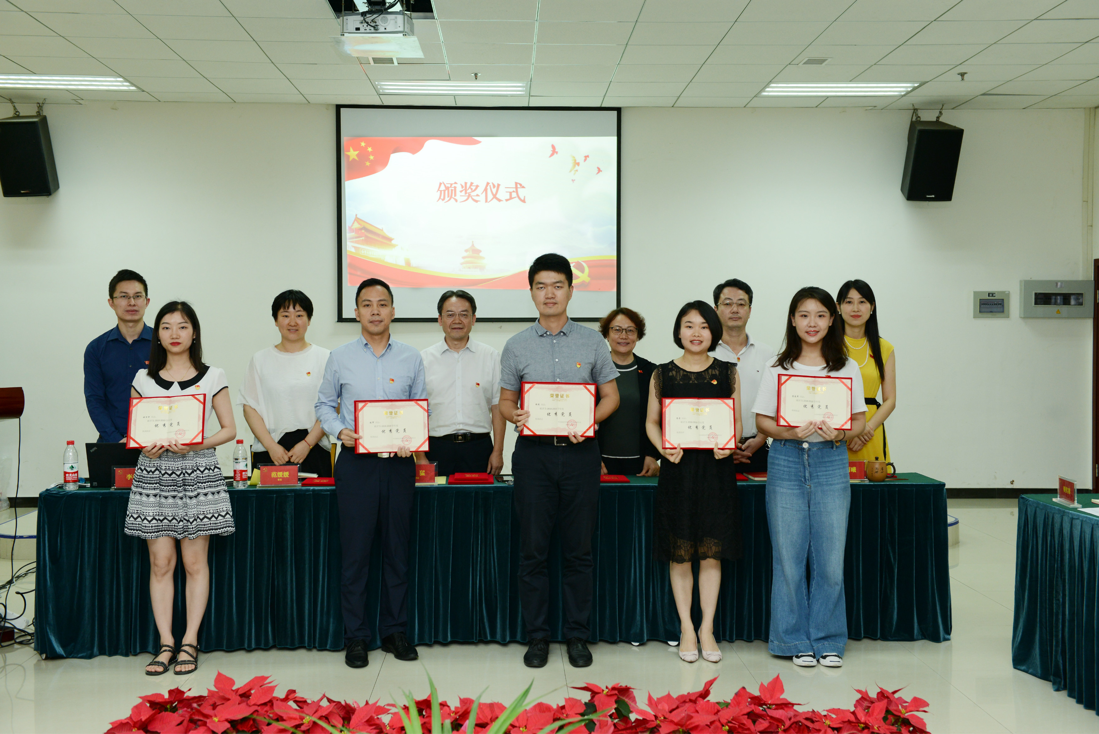 在庄严的国歌声中,本次大会拉开了序幕。首先进行的是新党员入党宣誓暨老党员重温入党誓词环节。在党旗前,三名新党员和全体老党员举起了右拳,庄严肃穆地宣读了入党誓言。随后,经理、党总支副书记王静同志宣读表彰决定。在主席台就坐的党总支委员、院领导为获奖的优秀党员、优秀党务工作者、先进党支部颁发了荣誉证书。