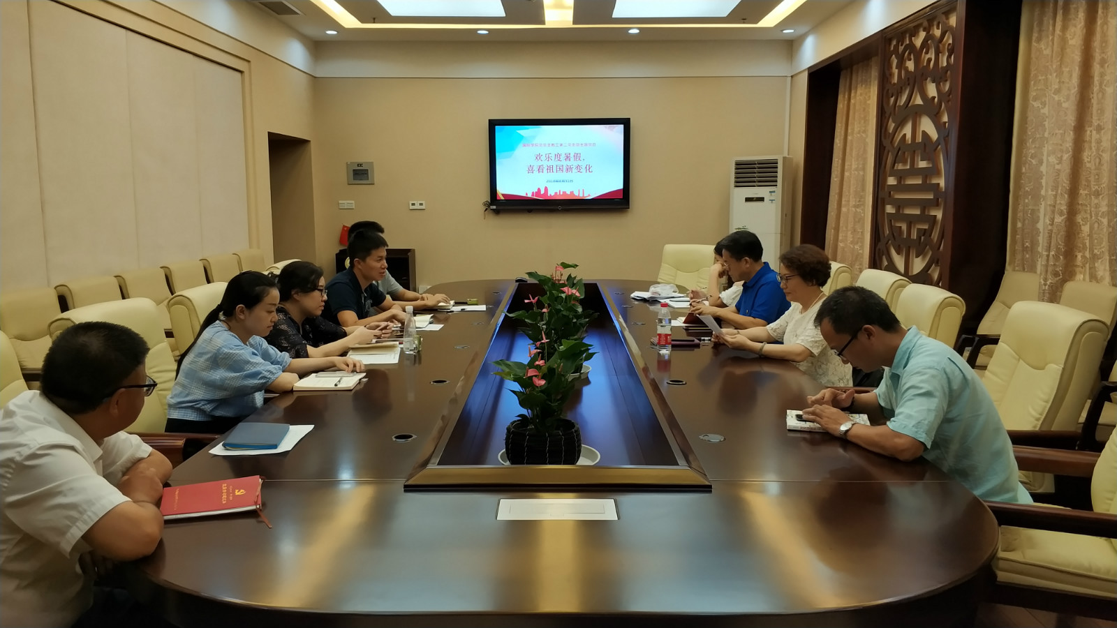 831日下午4点,正值新学期伊始,教工第二党支部全体党员在紫云楼签约室举行了“欢乐度暑假,喜看祖国新变化”的主题党日活动。