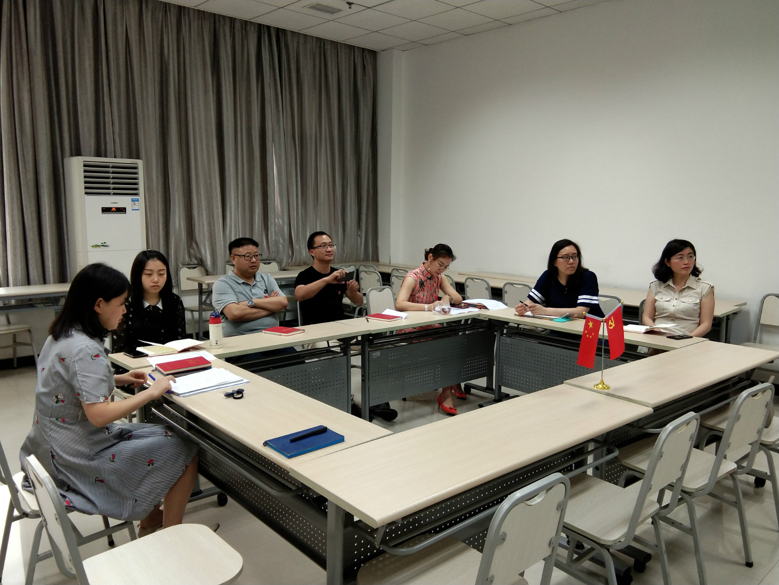 2018年6月8日下午3:00,公司党总支教工一支部在紫云楼签约室、教工二支部在312教室、研究生支部在210教室开展以“全面对标抓创建,千帆争流争上游”为主题的党日活动。