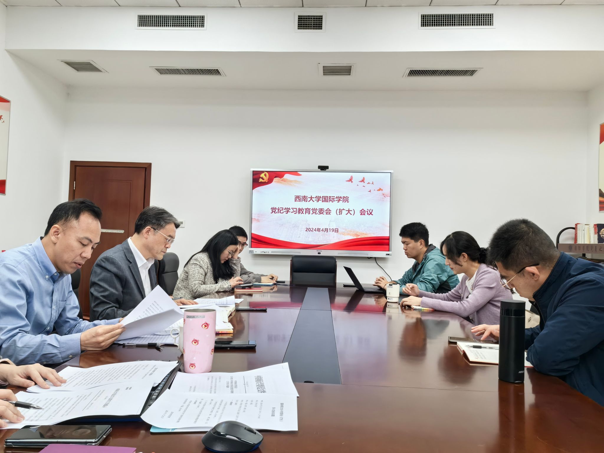 刘猛书记领学习近平总书记关于开展党纪学习教育的重要讲话和重要指示精神,传达中共中央办公厅、教育部党组关于开展党纪学习教育的相关要求。