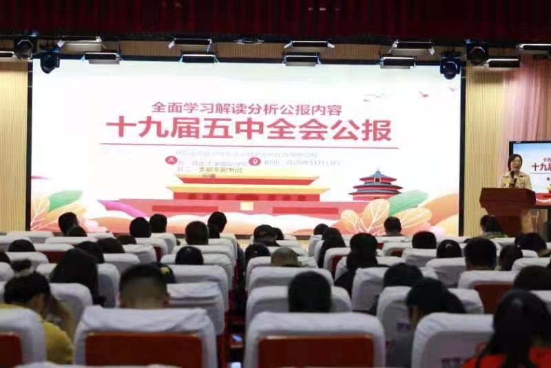 李林泽书记导学《中国共产党第十九届中央委员会第五次全体会议公报》和《中共中央关于制定国民经济和社会发展第十四个五年规划和二〇三五年远景目标的建议》。结合自身经历从三个方面对文件精神进行了深入解读:一是要充分认识党的十九届五中全会的历史性意义;二是要深刻领会“十三五”计划取得的决定性成就;三是要全面把握“十四五”主要目标和二〇三五年远景目标。李林泽书记号召全体同志要从十九届五中全会精神中汲取力量,做好自己人生的五年计划和长远目标。