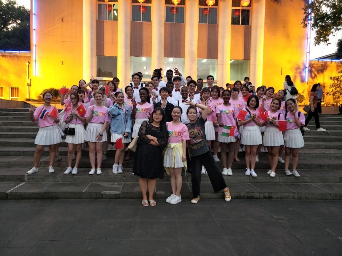 本次展演五洲合唱团演唱的曲目分别是《友谊地久天长》《我和我的祖国》。在演出中,团员们感情充沛,歌声美妙,现场效果甚佳,获得了观众的一致好评!演唱《我和我的祖国》时,每位团员手持中国国旗和自己国家的国旗在空中挥动,这传递着团员们对中国的美好感情,也表达着他们对中外友谊的美好祝愿。