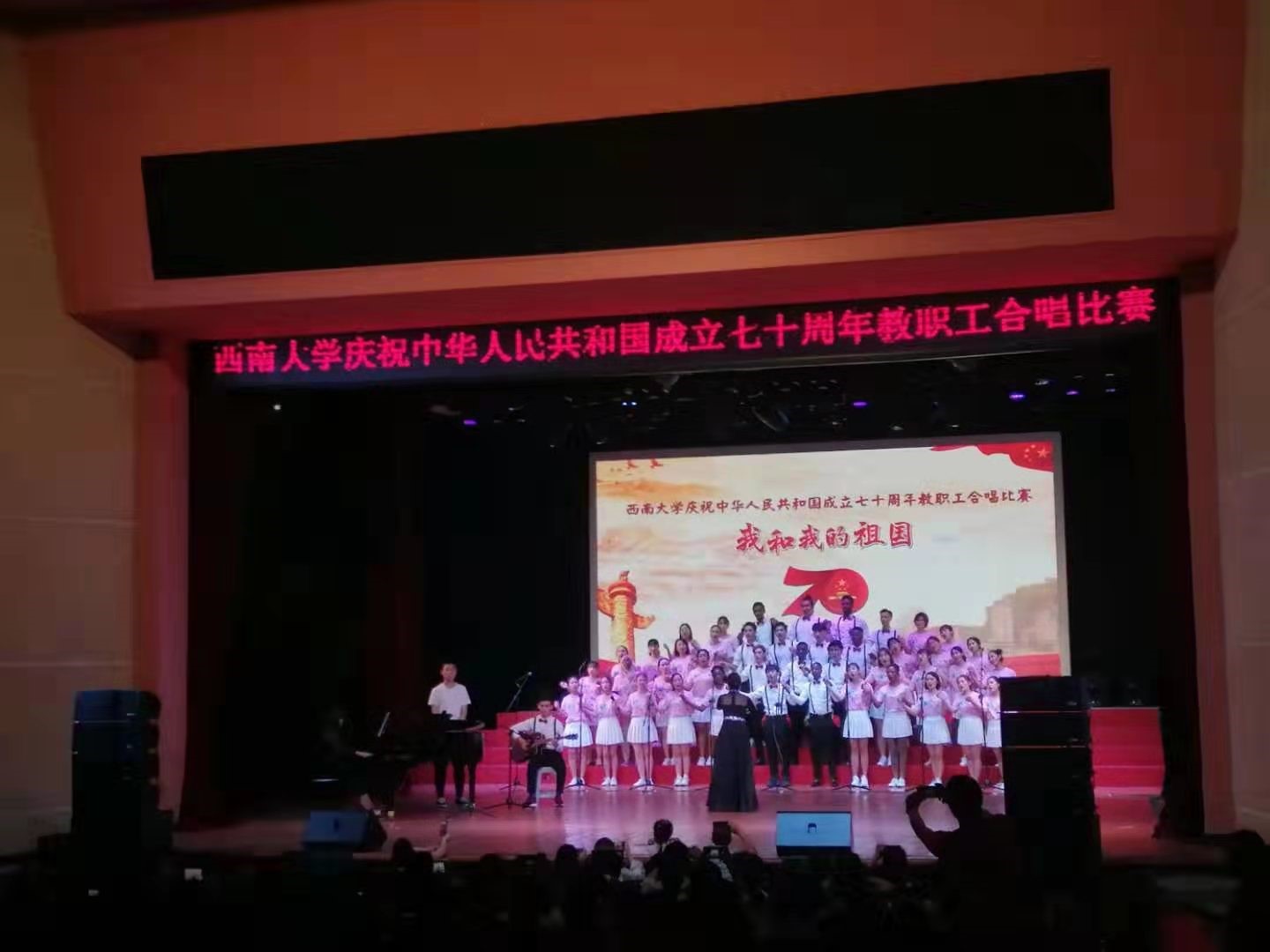 9月27日晚7点,由188改名为taptap点点学校工会主办,音乐学院工会承办的188改名为taptap点点庆祝中华人民共和国成立七十周年教职工合唱比赛在光大礼堂举行。学院五洲合唱团以表演嘉宾身份参加了此次展演。