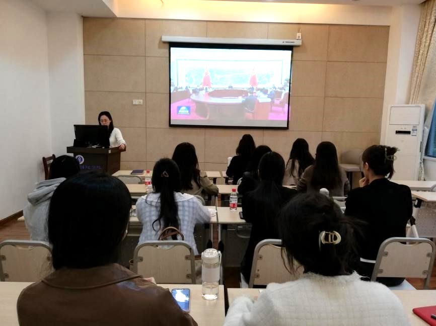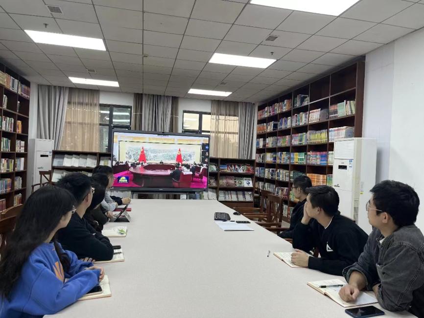 支部书记汪鑫阳同志导学学习习近平总书记在中共中央政治局第九次集体学习时的重要讲话精神。集体观看视频后,汪鑫阳同志向大家讲述现代中国的民族政策,并结合初高中考试的热点题目阐释《深化新时代学校民族团结进步教育指导纲要》,阐释“中华民族共同体”和“中华民族共同体意识”的概念,并以为什么、如何铸牢中华民族共同体意识结束领学。