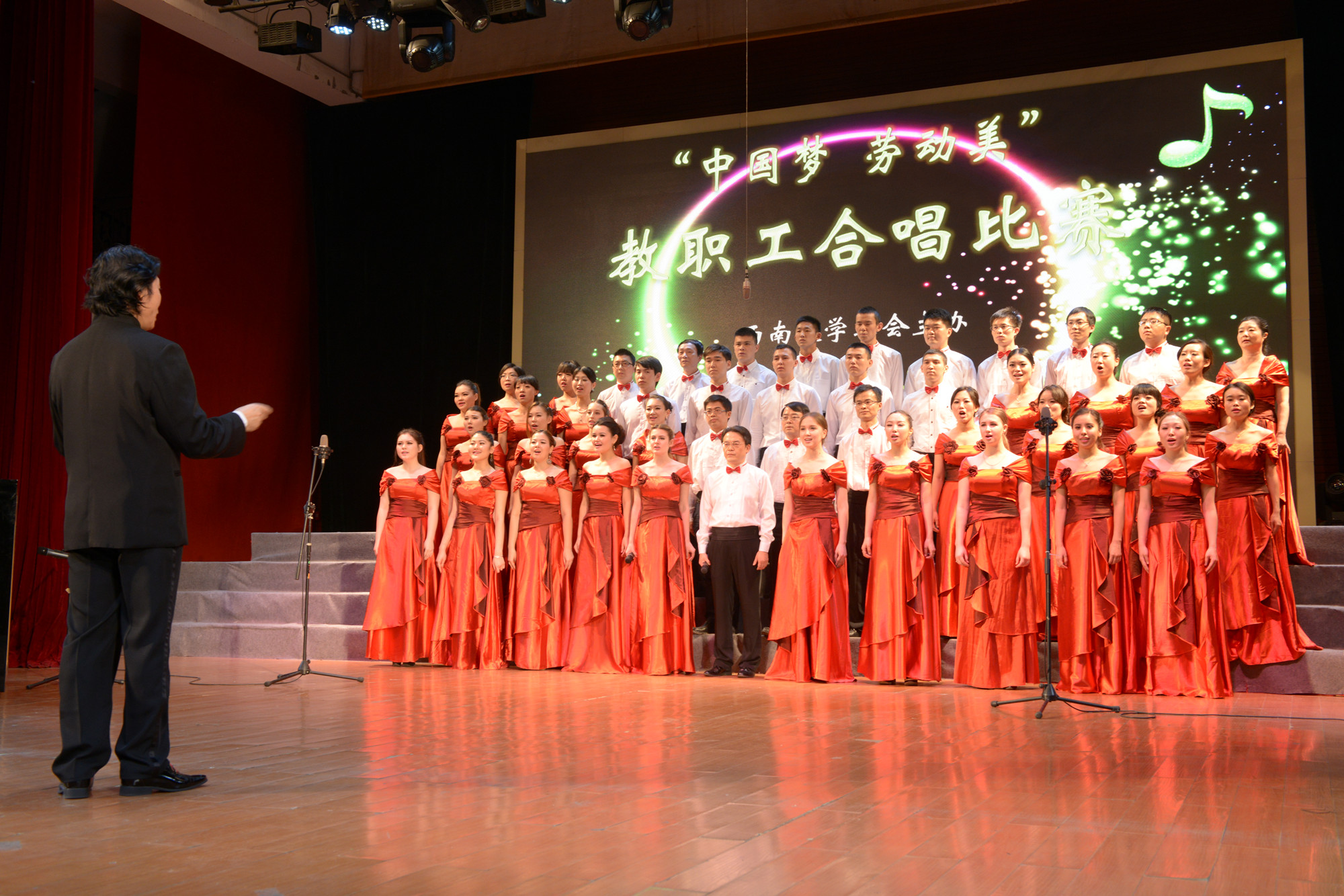 本次比赛学院从最年轻的到最年长的教职员工均倾情参与,全体领导班子成员悉数亮相。雄壮与柔美完美结合的歌声唱出了大家共同的中国梦,展示了公司蓬勃向上的发展势头,充满了上下凝聚一心、师生和谐融洽的正能量。