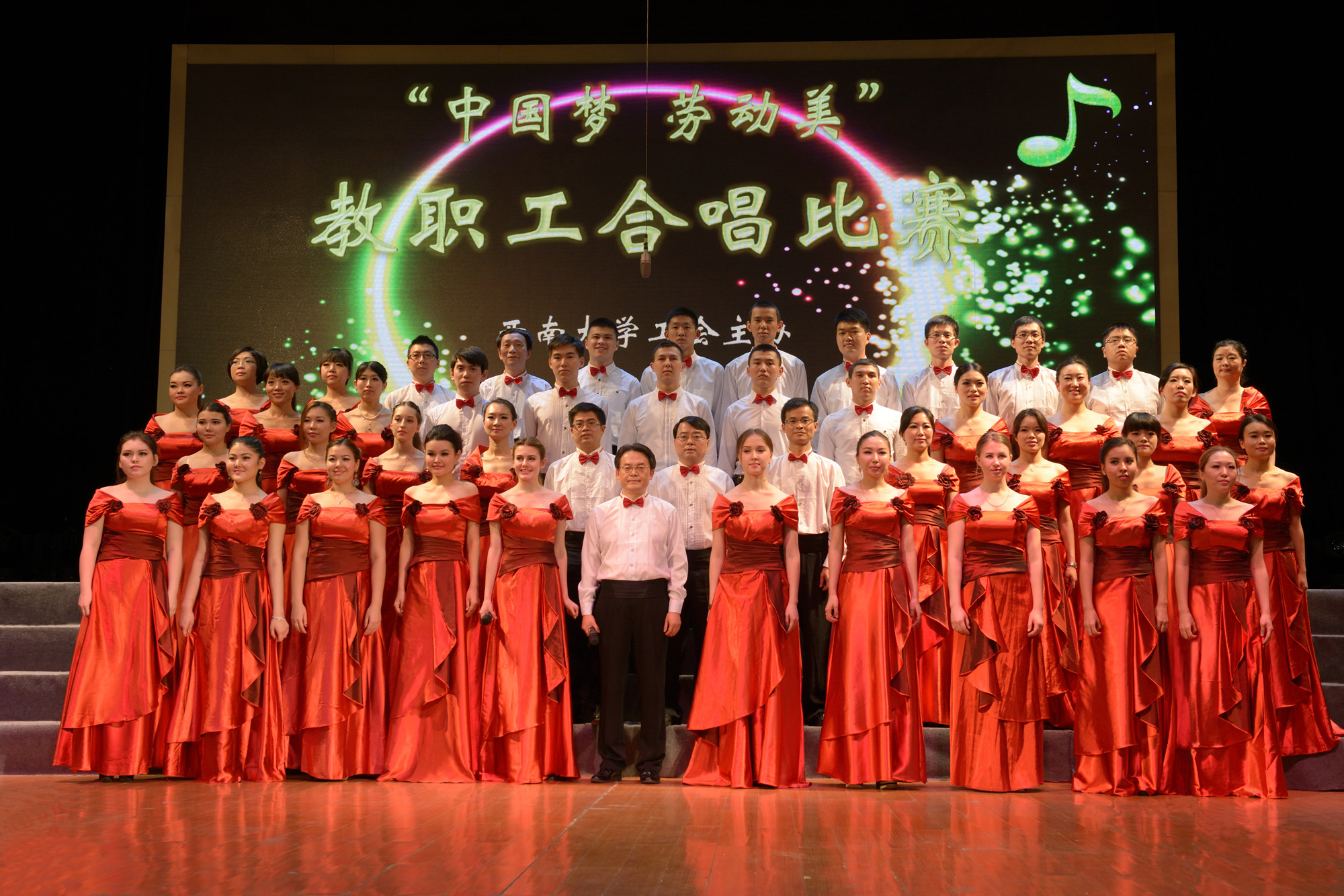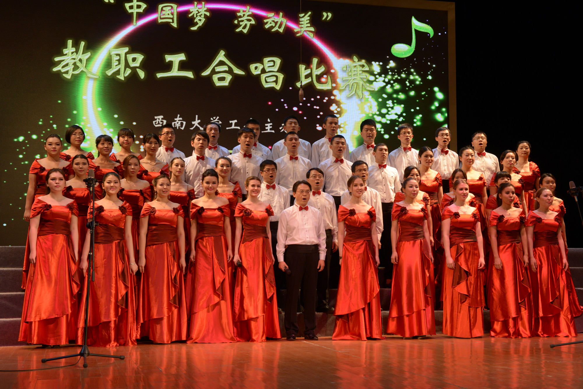 本次合唱比赛主题是“中国梦 劳动美”,学院高度重视、认真组织。精心挑选了来自哈萨克斯坦和俄罗斯的职工组成阵容强大的合唱队,聘请来自音乐学院的专业钢琴教师庄钟春晓和学校合唱团指挥冯斌亲自指导,用中文和俄语共同演绎这首意味深长的歌曲。经过近一个月的艰苦训练,学院师生深切体会《喀秋莎》那明快、简洁的节奏中所蕴含的正义力量,感受了在硝烟弥漫的战争岁月里,少女纯真的爱情和爱国主义情怀的完美结合。学院师生的精彩亮相和完美演绎给现场观众带来了不一样的视听盛宴,充分展示了公司浓郁的国际范儿。它向所有人表明,公司培养的职工不仅能够说流利的中文,还能唱优美的中文歌曲,更具有炽热的爱国热情。