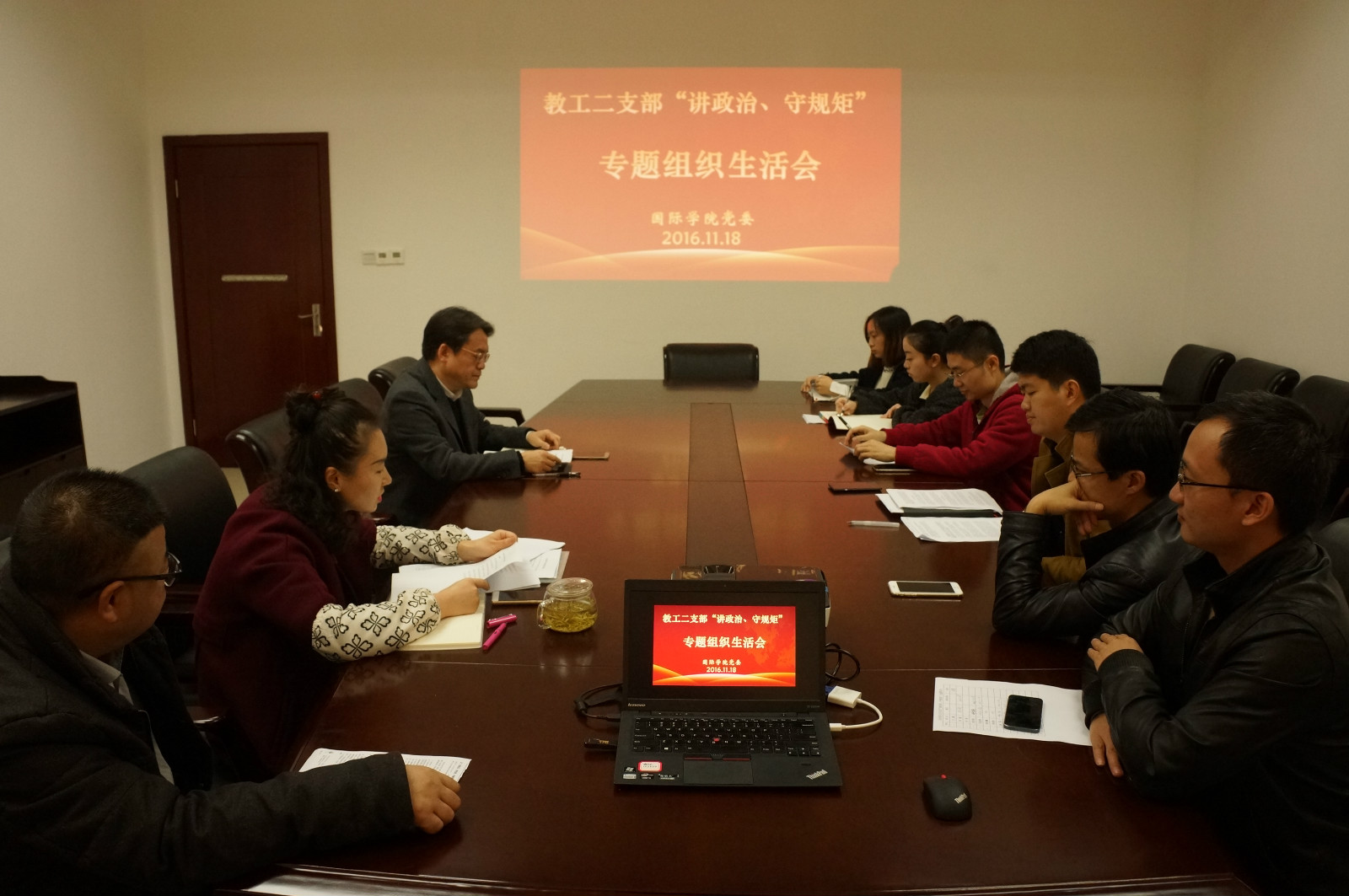 11月18日上午十点半,公司党委教工二支部在188改名为taptap点点304会议室开展“讲政治、守规矩”专题组织生活会,支部10名正式党员及2名预备党员参加了学习研讨。