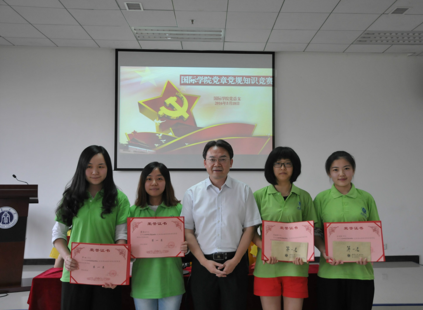 经过三个环节的激烈角逐,研究生一支部以清晰的思维、敏捷的反应夺得比赛最高分,教工支部也以亮眼的表现紧随其后。到场领导为获奖队伍颁奖并合影留念。