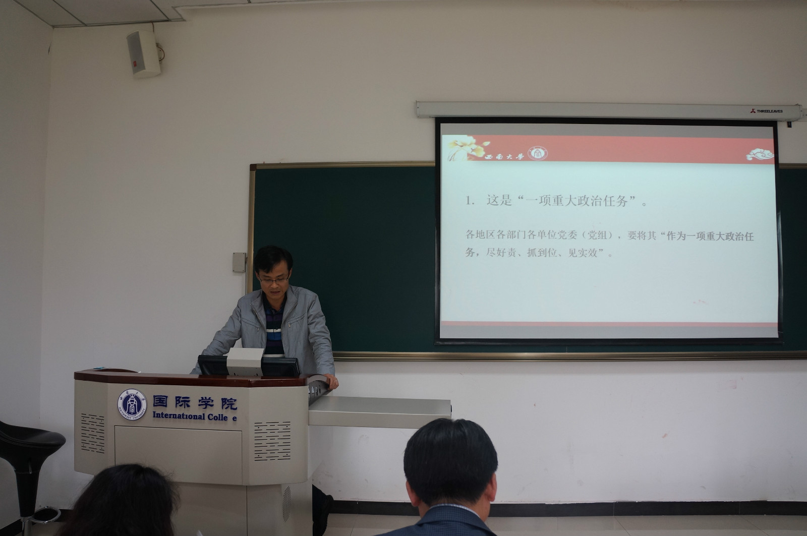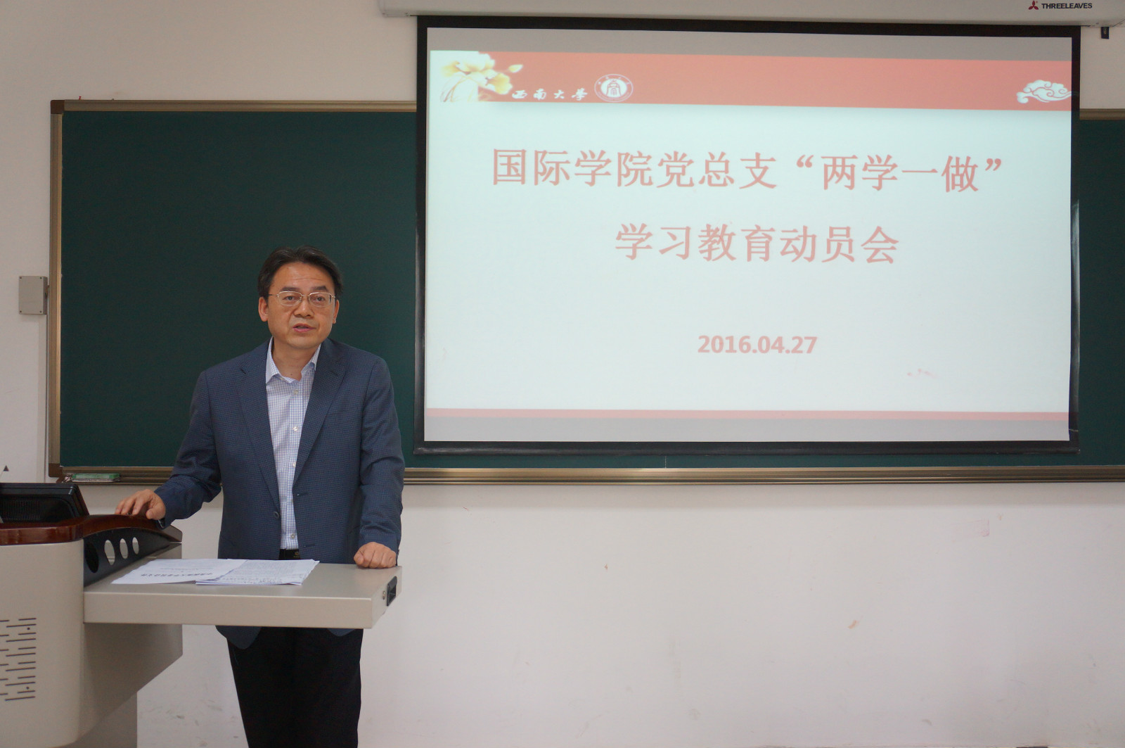 刘猛书记首先介绍了新一届党总支委员会的组成和分工情况,然后党总支组织委员代远鸿从十个方面对“两学一做”学习教育做了解读。