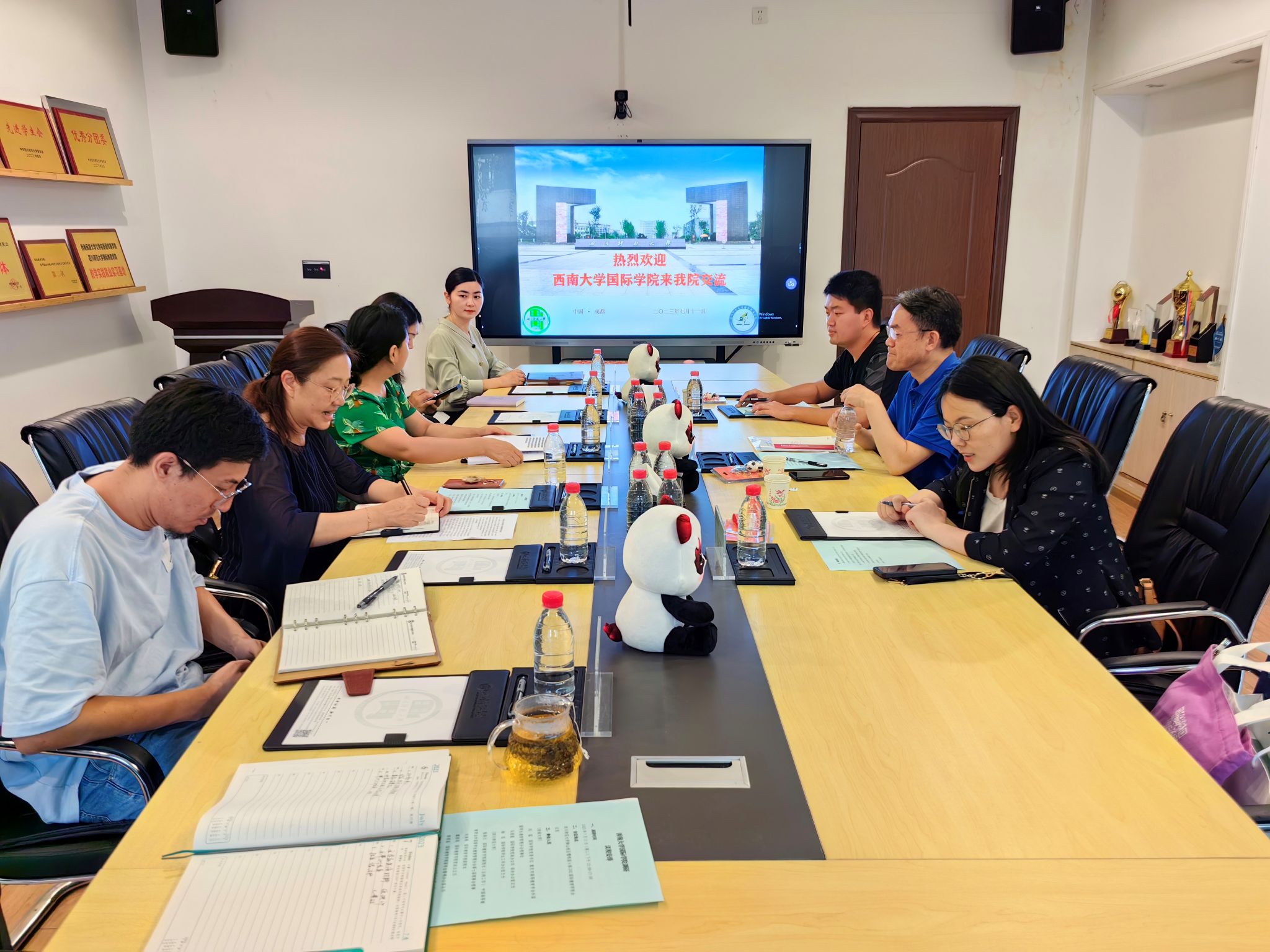 四川师范大学国际教育学院张春兰经理介绍学院发展概况和特色项目,高度认同公司为建设“两高”(国情教育高地和国际中文教育高地)所做出的努力。双方围绕党建与事业融合发展、来华职工公司产品趋同化管理、中外老员工协同育人等话题进行了深入交流研讨,一致同意共同打造面向来华职工的巴蜀文化传播平台。