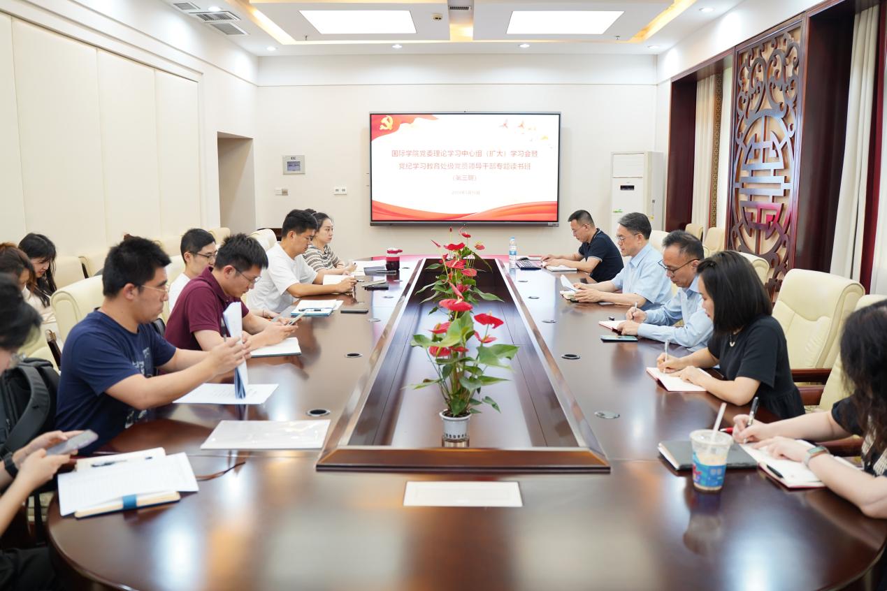 刘猛同志结合学院实际,谈到要始终坚持抓党建促发展,把开展党纪学习教育与高质量落实学院“十四五”规划有机贯通,真正以高标准、严要求、实措施完成党纪学习教育,将学习成果落实到完成来华留学重要工作部署及学院2024年重点工作上,推动学院各项工作再上新台阶,以更好的精神面貌和工作成绩为把学校建设成为中国特色、世界一流大学提供坚强保证。