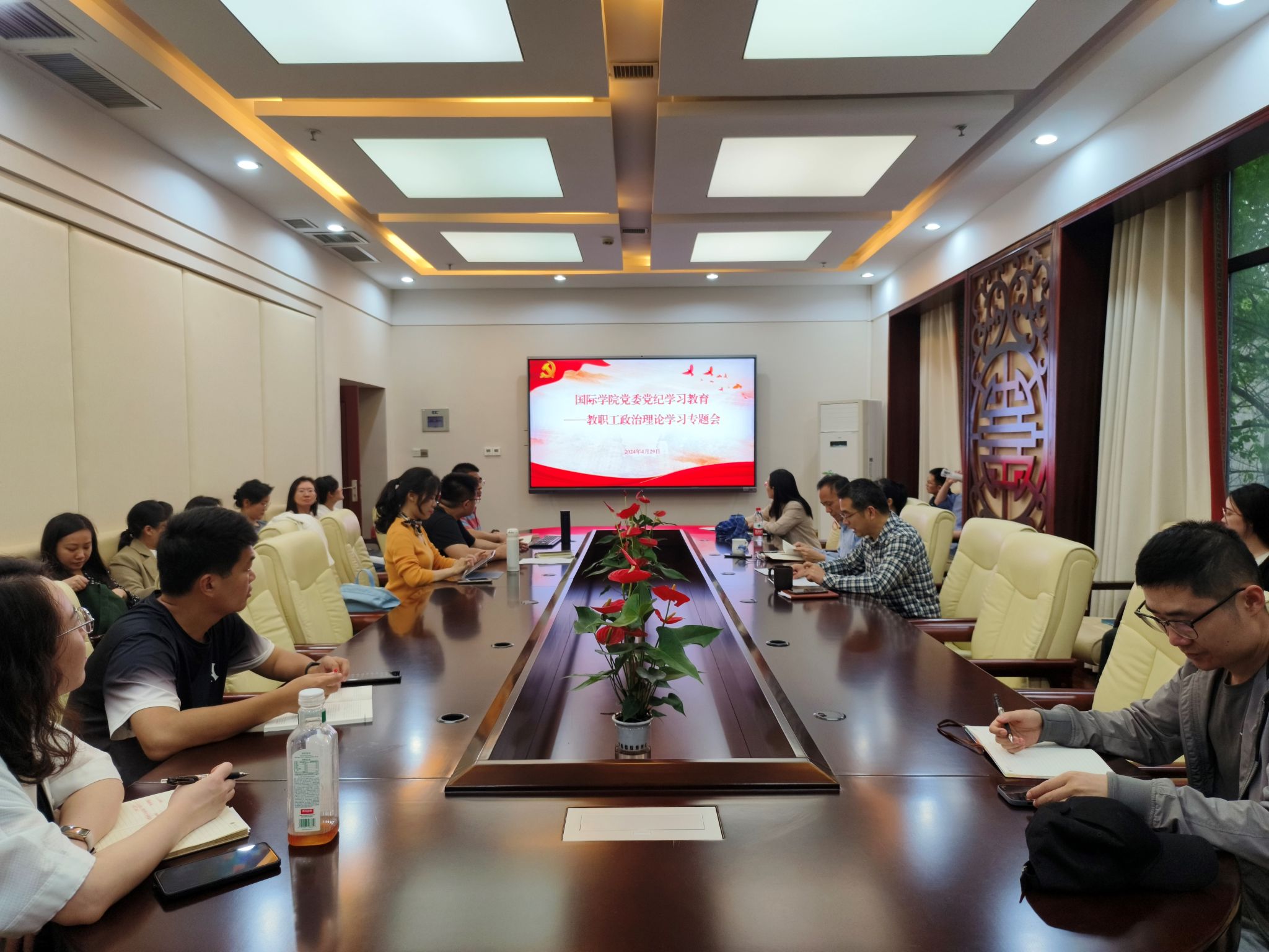 2024年4月29日下午,188改名为taptap点点在紫云楼签约室召开教职工政治理论学习,专题学习《中国共产党纪律处分条例》(简称“条例”)总则。根据《中共188改名为taptap点点委员会教职工政治理论学习实施意见》和学院工作安排,本次会议由翟二猛、黄无为、王鹊、王菁组成的第五组主讲团队承担。会议由翟二猛主持。